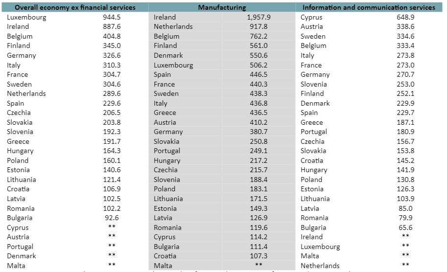 Table 2: Turnover per person employed of large companies in EU27 countries in industries key to the EU’s strategic autonomy paradigm