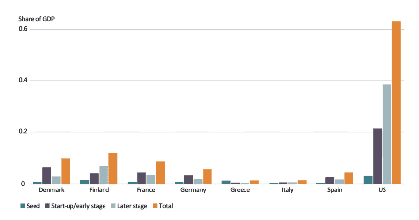 Chart 2: European and US Financing by Stage (share of GDP)While there is a case to be made for strategic investments in areas like space and defence industry, much of the new drive for a muscular industrial policy in Europe is focusing on company size and the creation of national or European champions. There’s an underlying assumption that other countries are cheating on us: Europe’s underlying problems aren’t of our own making. This is misguided. Europe’s problems with competitiveness and productivity have grown inside-out. They aren’t located among the large multinationals: they are big enough and can compete successfully. The problems stems from policies that are making it hard for SME’s to grow and keep up with technological and market changes.