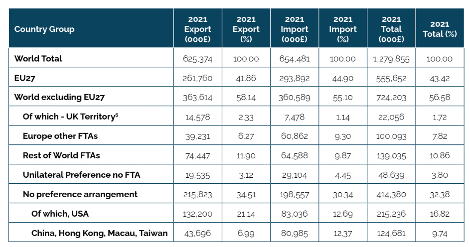 Table 1: UK goods and services trade – coverage by trade agreementsSource: Calculations by author based on ONS UK Total Trade By All Countries, Non-Seasonally Adjusted, Q4 2021.