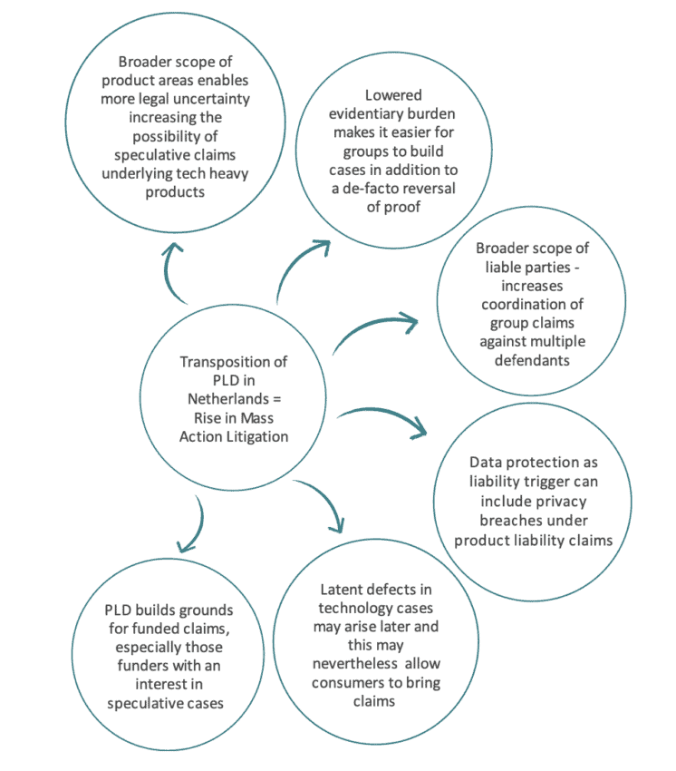 - Chapter 2 explores the interaction between the PLD and collective action in the Netherlands. It explains why the legal and institutional features that make mass litigation more prevalent in the Netherlands, compared to other EU countries, combined with the new avenues for mass litigation introduced by the EU PLD, could lead to an increase in such litigation.