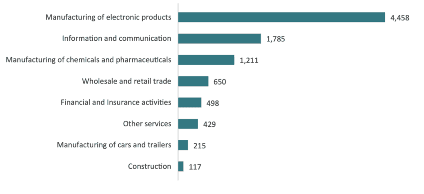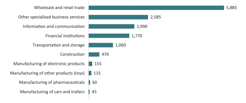 Moreover, Figure 7 shows that a significant number of foreign-owned multinationals belong to sectors where the risk of being subjected to mass litigation could increase as a result of the transposition of the PLD. Wholesale and retail trade had the highest number of foreign-owned firms, followed by the information and communication sector, and the financial sector.