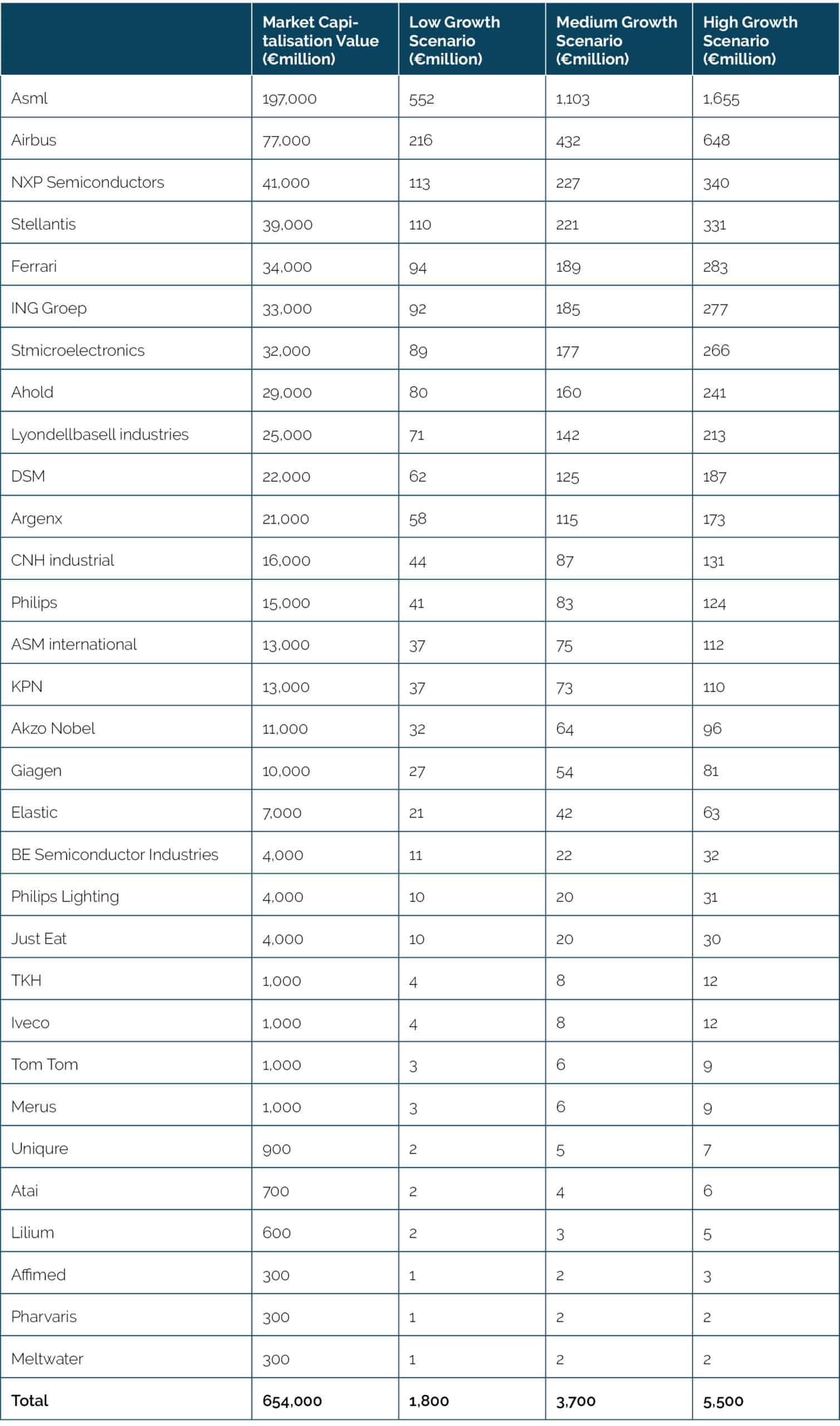 Growing mass litigation may also hinder innovation by redirecting R&D resources toward legal risk management. This is particularly concerning for the Netherlands, one of the EU’s top R&D investors. Drawing on US evidence, large-scale litigation can significantly erode market capitalisation, and based on our estimates, the cumulative loss in value for 31 Dutch companies featured in the EU R&D Scoreboard could reach €5.5 billion under the high-growth scenario.