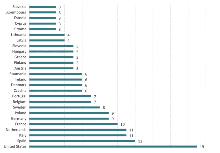 As concerns market penetrations, the choice of CVT providers varies across the EU. According to Eurostat’s 2020 data, private training companies are the most used providers across most EU27 countries, with 68.4% of enterprises relying on them. Public training institutions, often financed or guided by the government, are significant in countries like Estonia, Denmark, Belgium, Cyprus, Luxembourg, Finland, and Austria, reflecting strong government involvement in education and training[6]. These institutions are utilised by 12.1% of enterprises. Some enterprises also use private companies where the main activity is not training, such as equipment suppliers or parent companies; Greece, for instance, shows a relatively high usage rate of 32.1%, suggesting a specialised or industry-specific approach to training. Employers’ organisations, chambers of commerce, and trade unions as training providers show varying levels of usage. In Germany, Austria, Luxembourg, Slovenia, and Belgium, employers’ organisations are involved, with usage rates between 51% and 29%. Across the EU27, 22.8% of enterprises engage with employers’ organisations and chambers of commerce, while 2.8% use trade unions. Formal education institutions are used by 9.7% of enterprises, indicating their role in complementing vocational training.