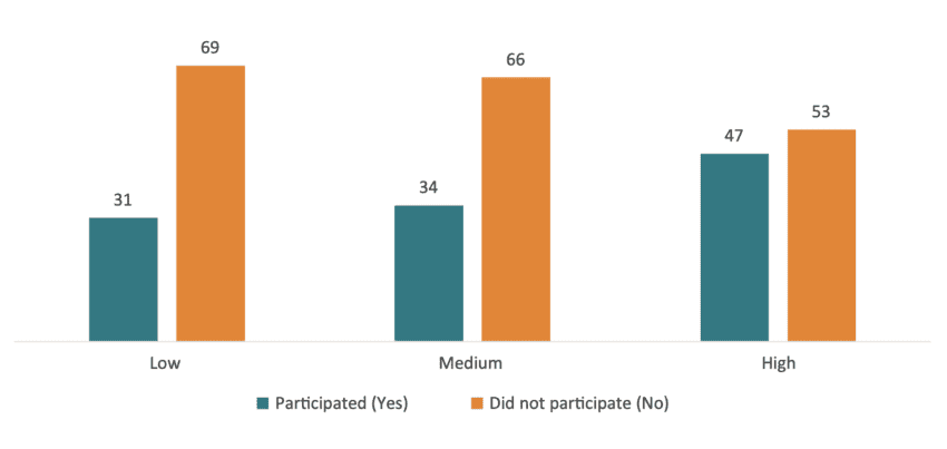 Figure 2: Participation in Job-Related Education or Training Courses by Education Level Over the Last 12 Months, 2021Source: ESJS2, Cedefop.