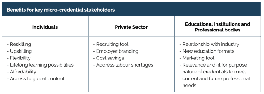Benefits of Micro-Credentials for Multiple Stakeholders