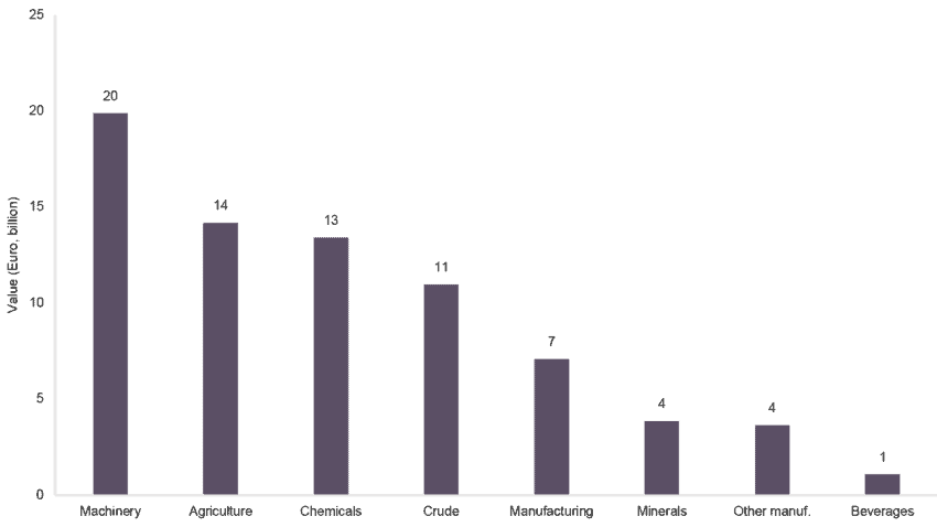 Figure 1: EU-Mercosur exports by economic sector (2019, billion euros)