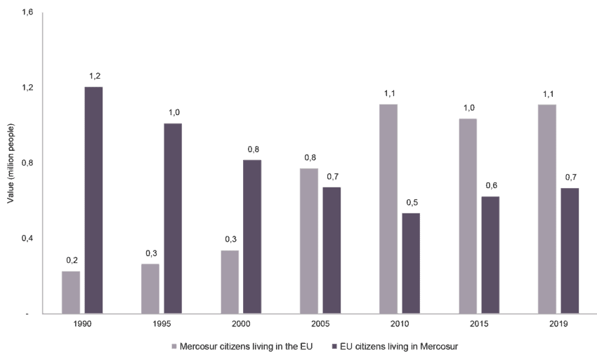 Figure 6: EU and Mercosur migrants living in the other region