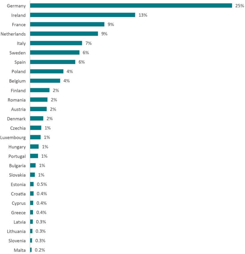 Figure 6: Share in EU ICT services value-added exports by EU member state (2020)Source: Author’s calculations based on data from OECD TiVA.