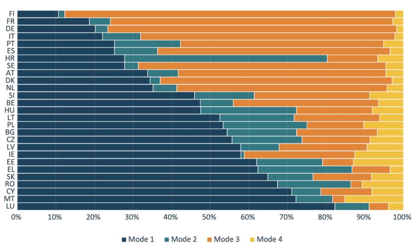 Figure 4: Services exports by modes of supply across EU member statesSource: Author’s calculations based on data from Eurostat.