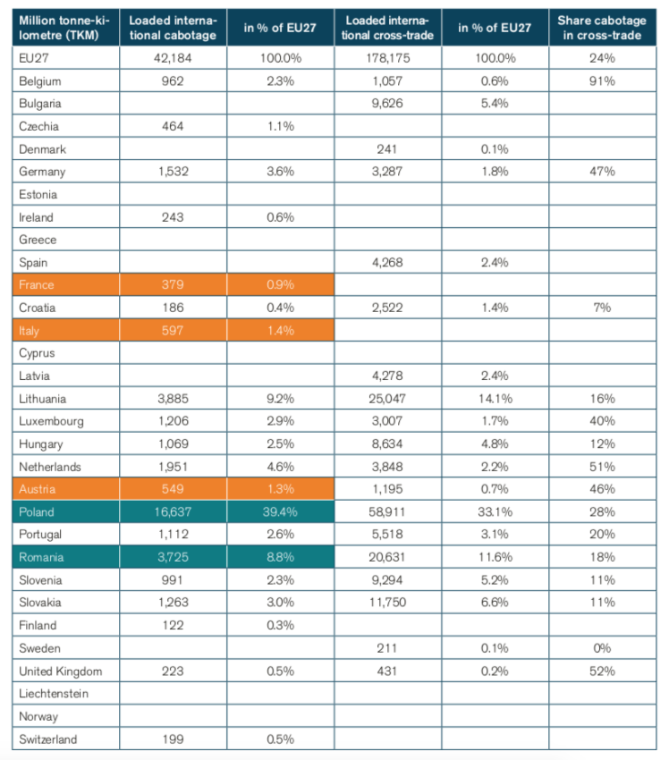 Table 2. Loaded freight cabotage vs. loaded cross-border trade, in 2018Source: Eurostat.