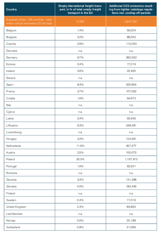 Table 4. Additional CO2 emissions resulting from tighter cabotage regulations incl. cooling-off periodsSource: Eurostat and KPMG calculations.