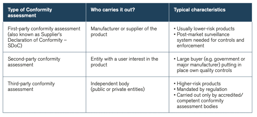 Table 1: Main types of conformity assessment proceduresSource: Author’s elaboration based on ISO/IEC 17000.