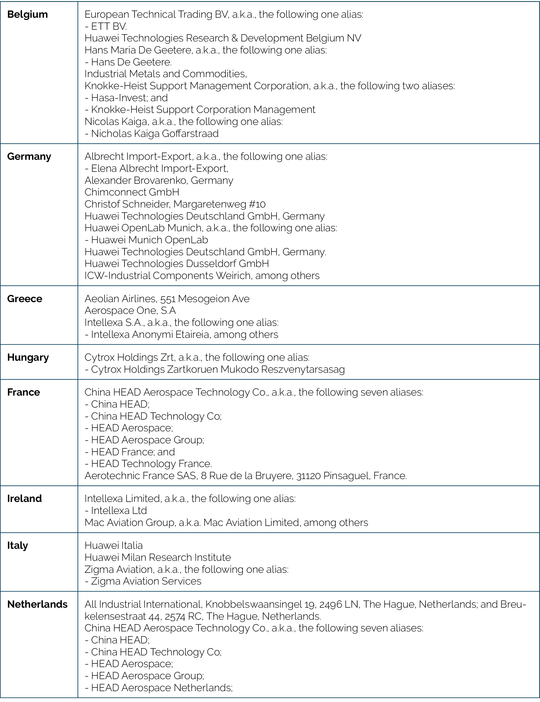 In addition, the legal and commercial landscape for EU technology companies is also becoming increasingly fraught with Export Administration Regulations (EAR), particularly under § 744.11 of the EAR.[13] These controls impose license requirements on entities that are acting, or are at significant risk of acting, contrary to the national security or foreign policy interests of the US.[14] Several EU-based entities find themselves navigating this challenging regulatory environment (see Table 1 below).