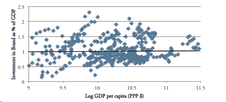 Figure 3. Correlation between GDP per capita (PPP) and investment in brands