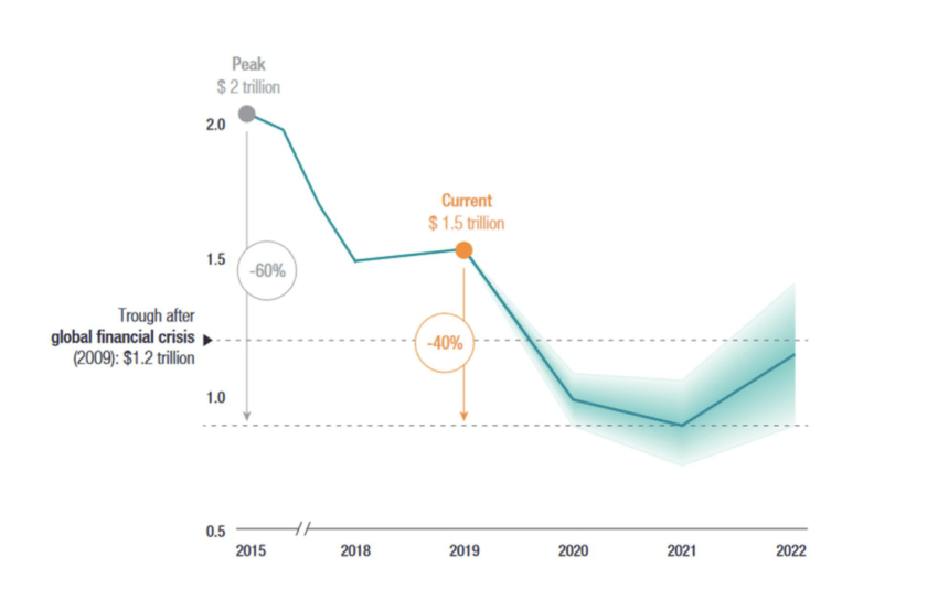 Figure 4: Global FDI inflows: before and after the covid-19 pandemic (USD trillions)