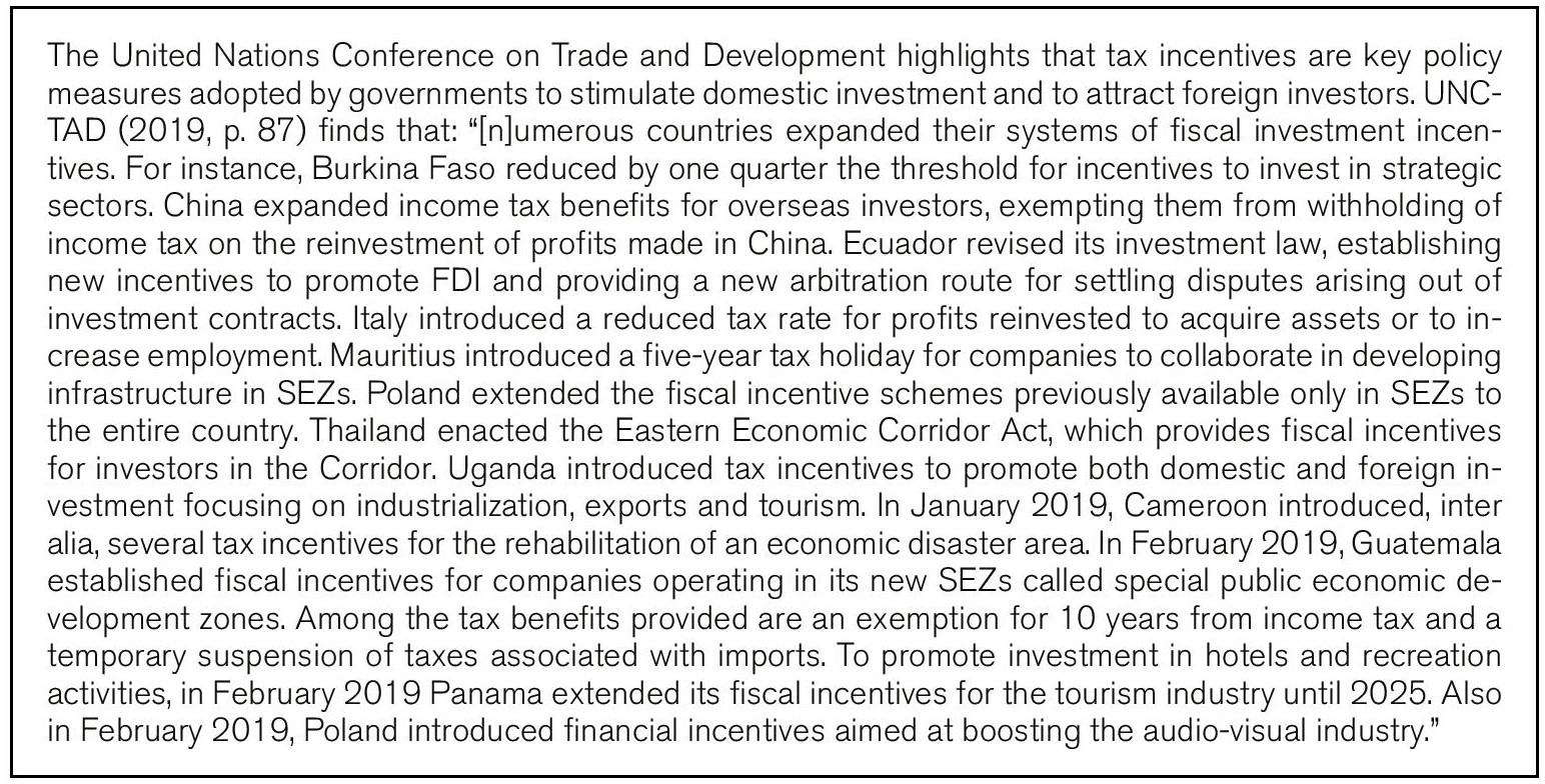 Box 2: Tax and other fiscal incentives still important investment promotion tools (UNCTAD)