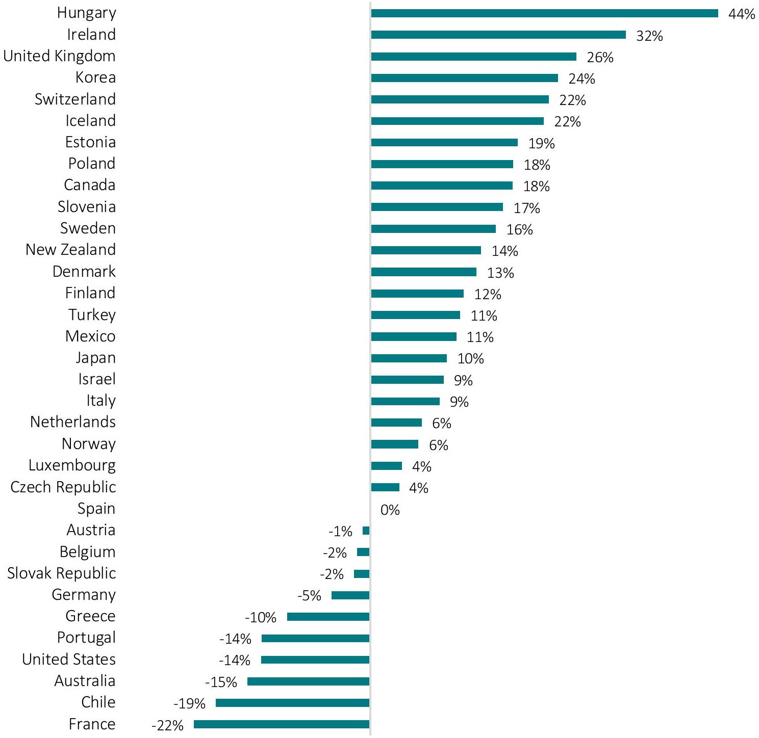 Figure 6: Changes in outward investment in % of total outward investment in OECD countries resulting from the full elimination of effective corporate tax rate differentials, scenario 3