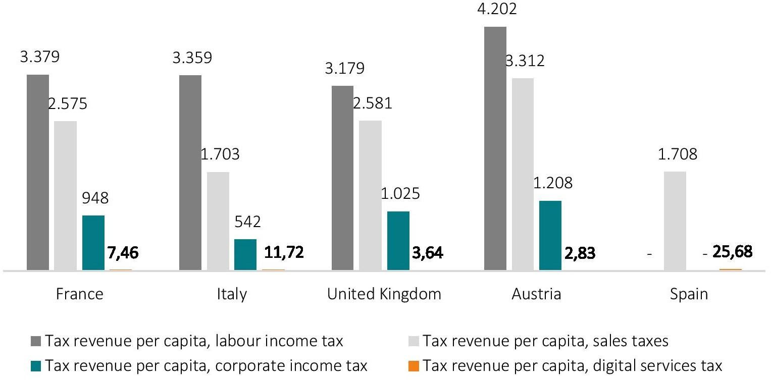 Source: ECIPE calculations based on OECD tax revenue data. Note: the estimates outlined in column 6 are for scenario 3 and based on a semi-elasticity of -3.