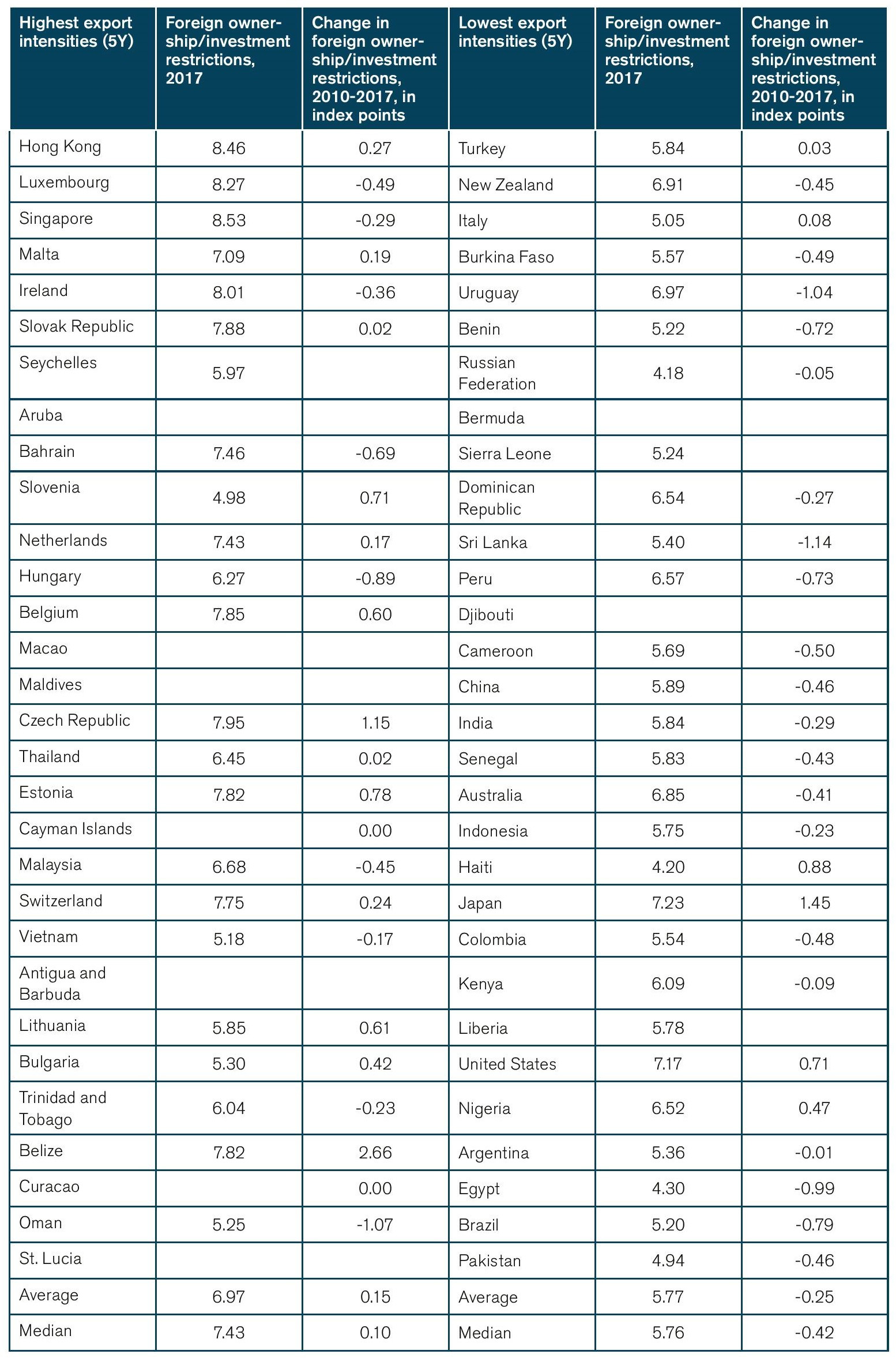 Table 6: Investment barriers in the Top-30 “Inclusive Framework” countries with the highest and lowest export intensities