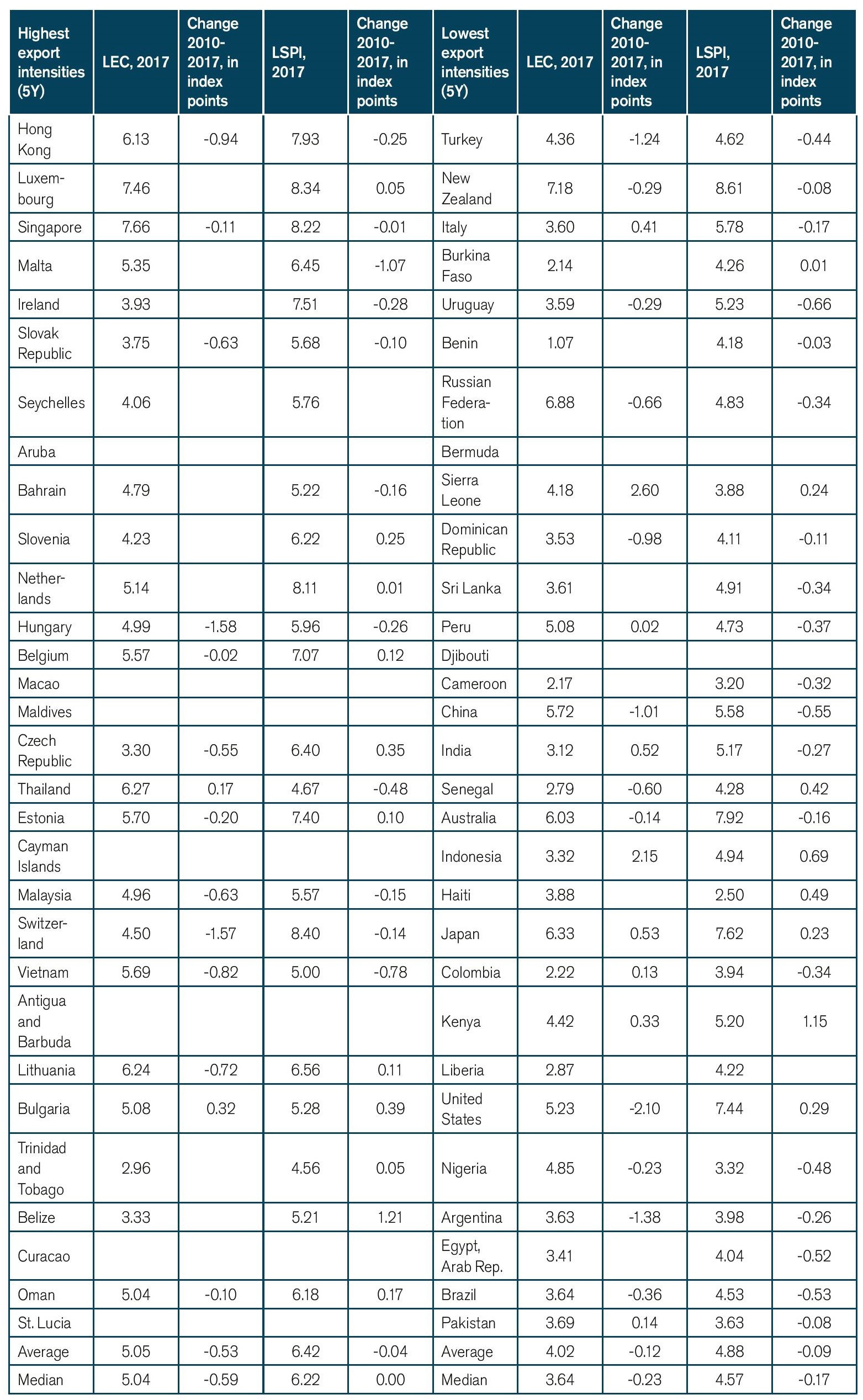 Source: World Bank data. Note: export intensities have been calculated on the basis of 5Y average export to GDP ratios. The numbers depicted in the chart represent the distance from the sample mean, which is 0.49 for the countries participating in the Inclusive Framework.[4]