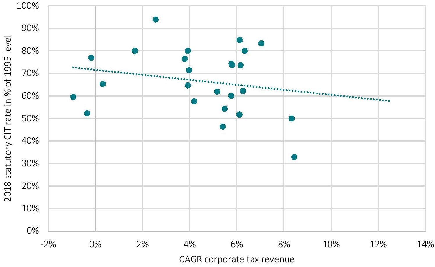 Figure 11: Correlation between reductions in the statutory corporate tax rate and revenues from taxes on corporate income