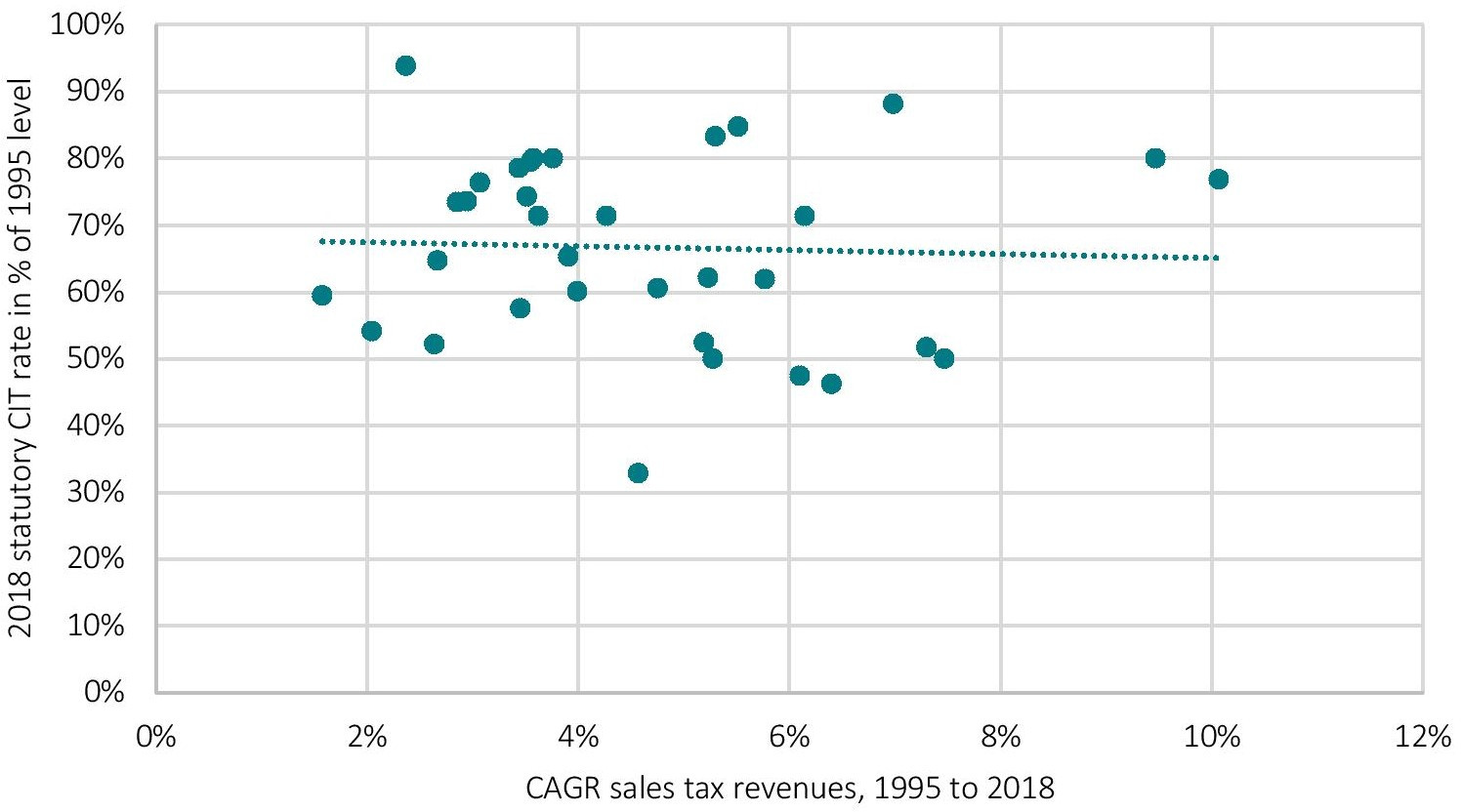 Figure 12: Correlation between reductions in the statutory corporate tax rate and revenues from sales taxes